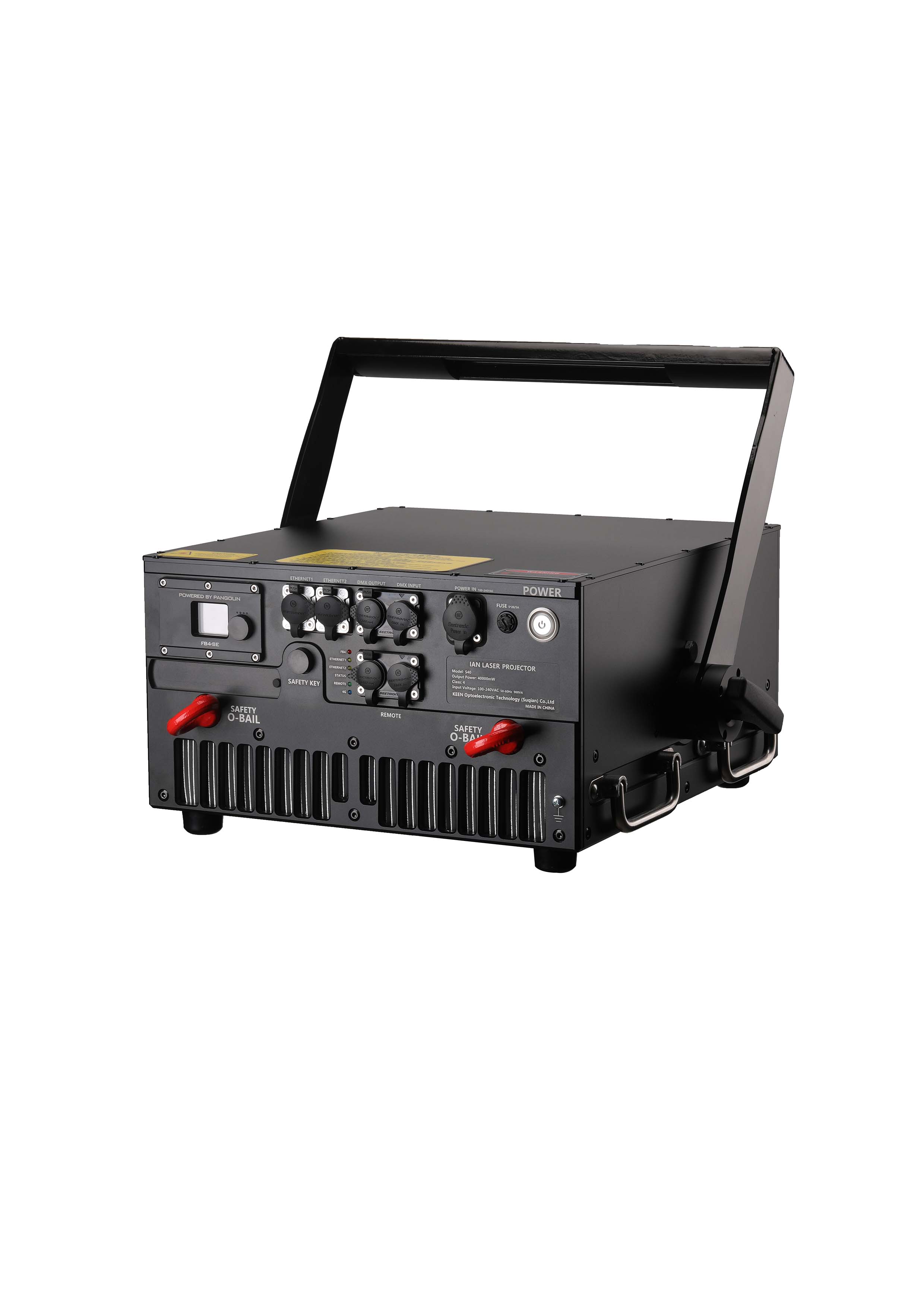Each internal section of the laser device is equipped with an independent power supply to improve circuit stability. Through the built-in FB4 interface, the S28 offers multiple control options, including ILDA, DMX, and direct computer control via Ethernet (using QuickShow or BEYOND software). Safety measures include a European-standard remote emergency stop switch and a physical shutter.